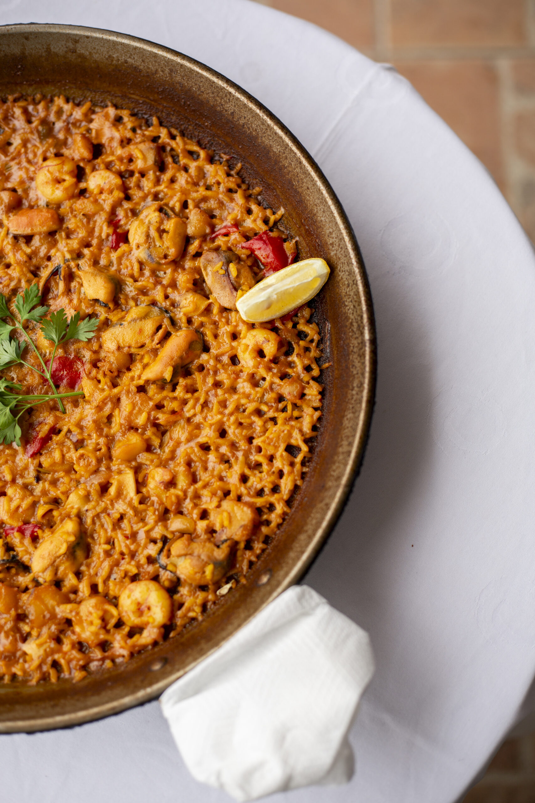 Amplia carta de cocina gastronómica mediterránea con todo tipo de arroces, carnes, pescados y mariscos.